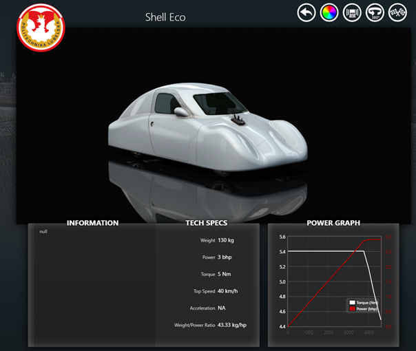 Model obejmuje także parametry techniczne pojazdu takie jak (między innymi): masę pojazdu, geometrię układu zawieszenia i układu kierowniczego, typ opon, układ napędowy w uwzględnieniem charakterystyki silnika, opory aerodynamiczne poszczególnych sekcji, układ hamulcowy itd.