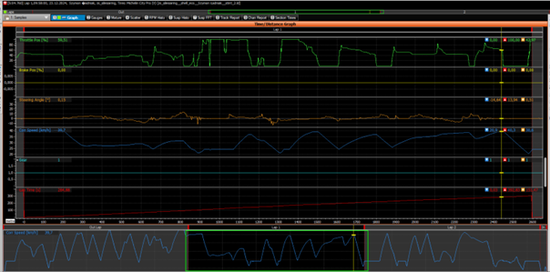 Analizy wstępne przeprowadzono w programie Motec i2 Pro. Czas jednego okrążenia wyniósł 5:04.760. Minimalna prędkość wynosiła 21,4 km/h a maksymalna 39,6 km/m. Wyniki te są zgodne z założeniami opracowywanego pojazdu.